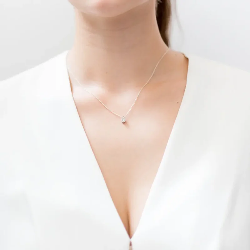 Colgante en oro blanco de 18Kcon diamante tipo “Dormilona”