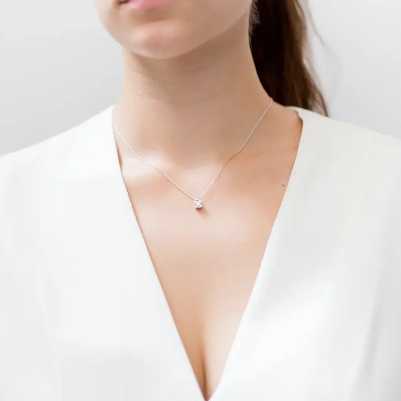 Colgante en oro blanco de 18Kcon diamante tipo “Dormilona”