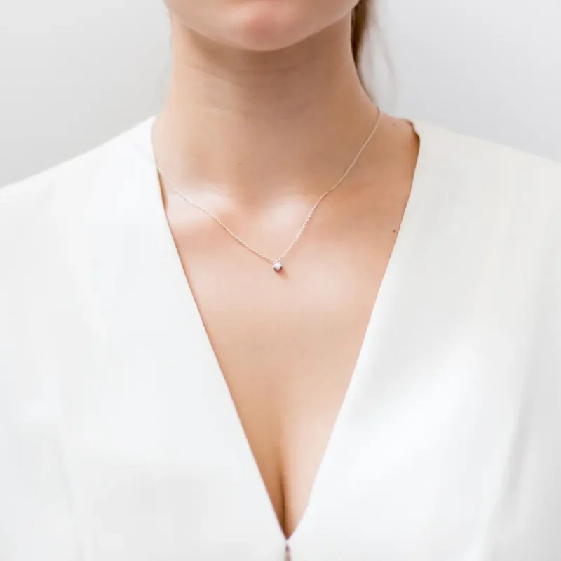 Colgante en oro blanco de 18Kcon diamante tipo “Dormilona”