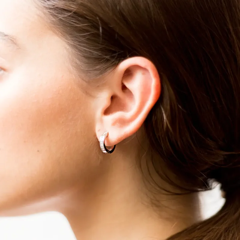 Pendientes tipo criolla oro blanco 18k. con diamantes talla brillante con un color G-H y pureza VS con un peso total de 0,27 quilates.