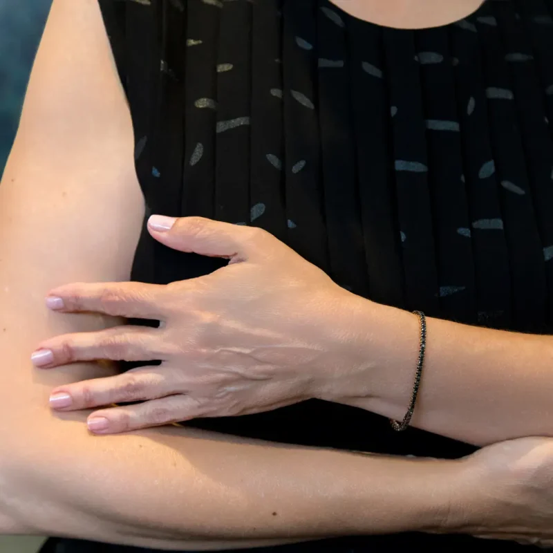 Pulsera rivière oro rosa 18k. 66 con diamantes talla brillante de color negro y pureza VS con un peso total de 3,30 quilates.